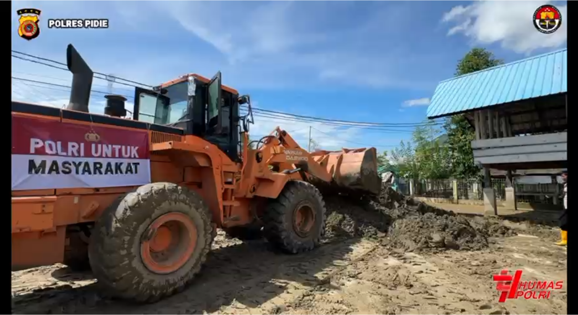 Bantuan dari Kapolri tersebut berupa dua unit alat berat, yakni satu unit wheel loader dan satu unit excavator, serta dua unit mobil dump truck. Alat-alat tersebut dikerahkan oleh Polres Pidie melalui Posko Tanggap Darurat Bencana untuk membersihkan fasilitas umum dan rumah warga serta gundukan tanah dan lumpur yang menutupi badan Jalan di Gampong Jojo menuju Gampong Tiba Mesjid Kecamatan Mutiara Timur.